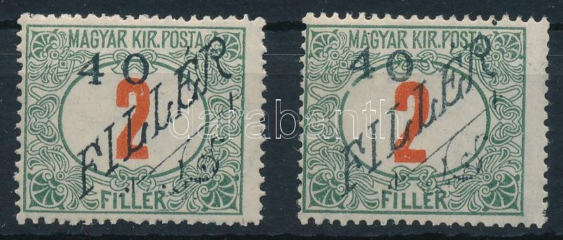 Leírás: Temesvár 1919 Portó 40f/2f távol álló "4 0" lemezhibával + támpéldány / Mi P1 with plate variety