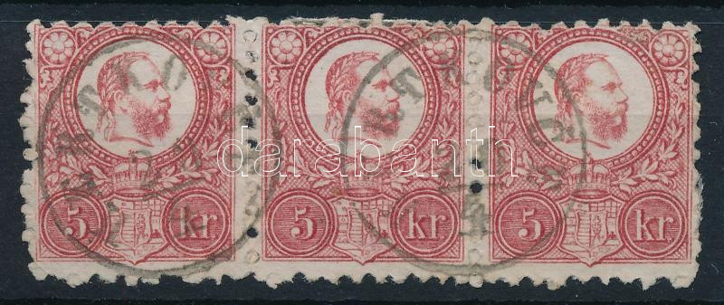 Leírás: 1871 Réznyomat 5kr hármascsík / Mi 10 strip of 3 "HERTKOVCE" (Gudlin 800 p) (eltömődött fogak)