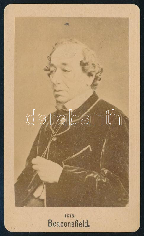 cca 1880 Benjamin Disraeli, Beaconsfield grófja (1804-1881) brit konzervatív politikus, író, miniszterelnök (az Egyesült Királyság egyetlen zsidó származású miniszterelnöke), vizitkártya, 10x6 cm // cca 1880 Benjamin Disraeli, 1st Earl of Beaconsfield (1804-1881) British statesman, Conservative politician, writer, Prime Minister of the United Kingdom (the only British prime minister to have been born Jewish), cdv photo, 10x6 cm