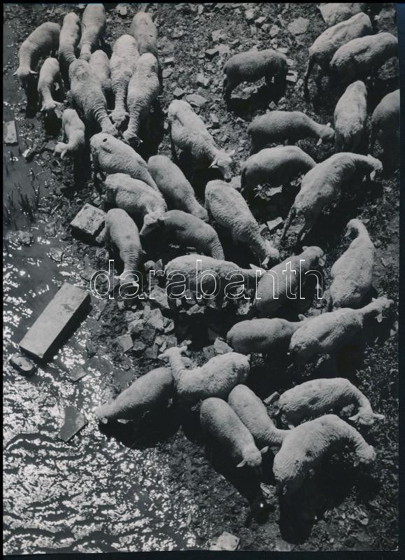cca 1940 Szendrő István (1908-2000) budapesti fotóművész hagyatékából, jelzés nélküli vintage fotó (Nyáj a patak partján), ezüst zselatinos fotópapíron, 24x18 cm