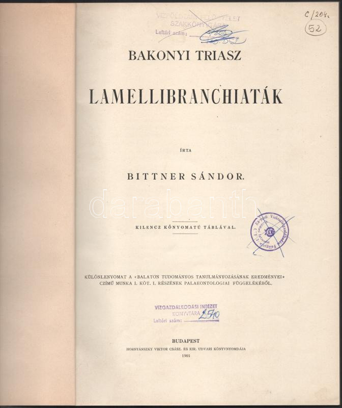 Bittner Sándor: Bakonyi triász-lamellibranchiaták. [A Balaton tudományos tanulmányozásának eredményei I. köt.: A Balatonnak és környékének fizikai földrajza I. rész: A Balaton környékének földrajzi leírása, orografiája és geologiája. Függelék: A Balatonmellék paleontológiája II. köt. 3. rész.]