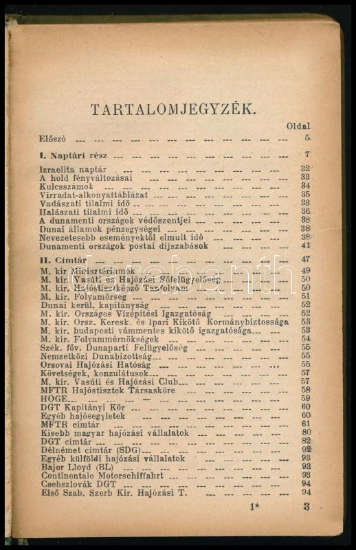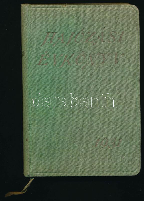 Magyar "Hajós-Naptár" folyam-hajózási évkönyv 1931. Szerk.: Timora Gyula és Keményfy István hajóskapitányok. VI. évf. Bp., 1931, Toldi Lajos, (Stephaneum-ny.), 287+1+XXIV p. Korabeli reklámokkal. Fekete-fehér illusztrációkkal. Címtárral, rendeletekkel, hajózási és műszaki adatokkal, kilométermutatóval. Kiadói aranyozott egészvászon-kötés, jó állapotban.