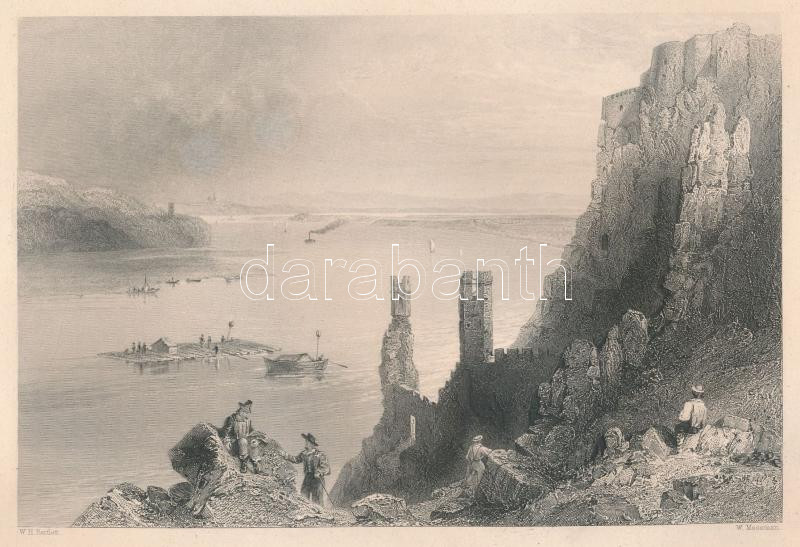 cca 1845 Bartlett, William Henry (1809-1954) - W. Mossmann: Dévény vára az apácák tornyával, acélmetszet, jelzett a metszeten, szép állapotban, 20×26 cm