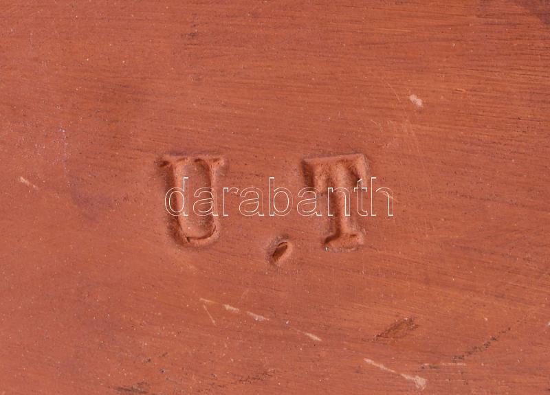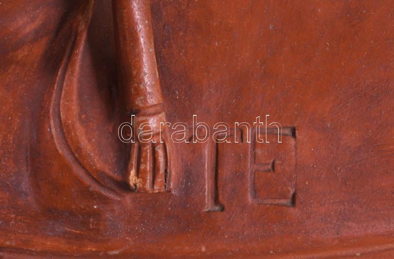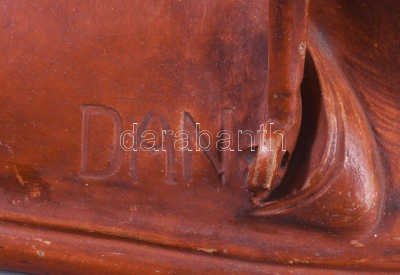 Dante Alighieri terrakotta mellszobra. cca 1905 UT jelzéssel. A munka feltehetően az L. Galli & Raffaello Vignali olasz testvérek budapesti szoboröntödéjében készültek, ahol a Millenniumi emlékmű szobrai is. 18x21 cm. A szobor Üchtritz Amade grófnő sz. Bánhidy Stefánia váróbő, regényíró hagyatékából származik, annak Dísztéri lakásából, ahol túlélte a számos belövést a II. világháborúban. /// Terracotta bust of Dante Alighieri, c. 1905, marked UT. The work was likely produced at the Budapest foundry of Italian brothers L. Galli & Raffaello Vignali, where the statues for the Millennium Monument were also made. 18 × 21 cm. The sculpture comes from the estate of Countess Amade Üchtritz, née Stefánia Bánhidy, a novelist, from her formal apartment, where it survived multiple shell impacts during World War II.