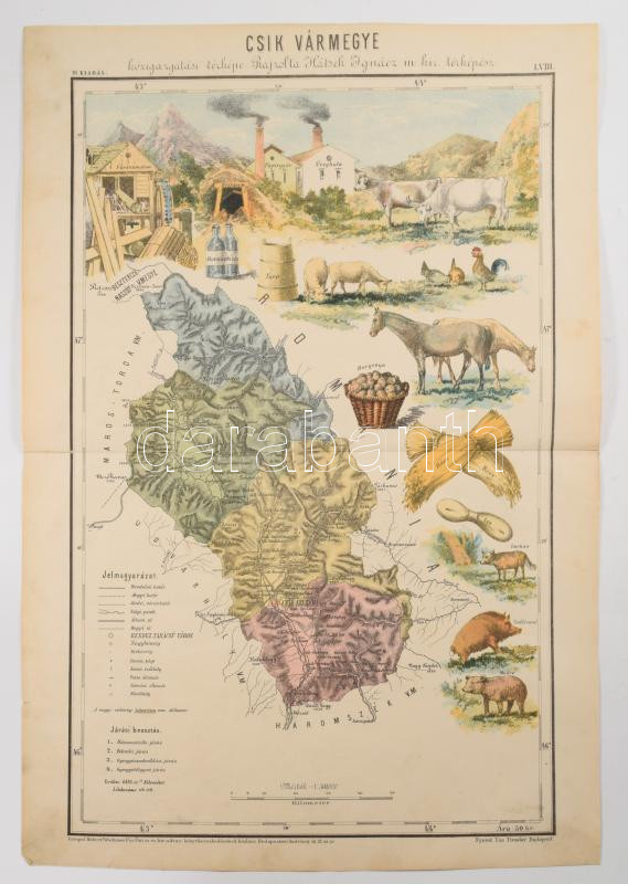 Csik vármegye nagy méretű (37 x 53 cm. ) kőnyomatú térképe (Tusnád - Csikszereda - Gyergyószentmiklós). Megjelent, Hátsek Ignácz: Magyarország megyei térképei c. atlasz lapjaként. Rajzolta Hátsek Ignácz. kiadta: Lampel Róbert (Wodianer F. És Fiai) nyomtatta: Kunossy Vilmos és Fia, Budapest.