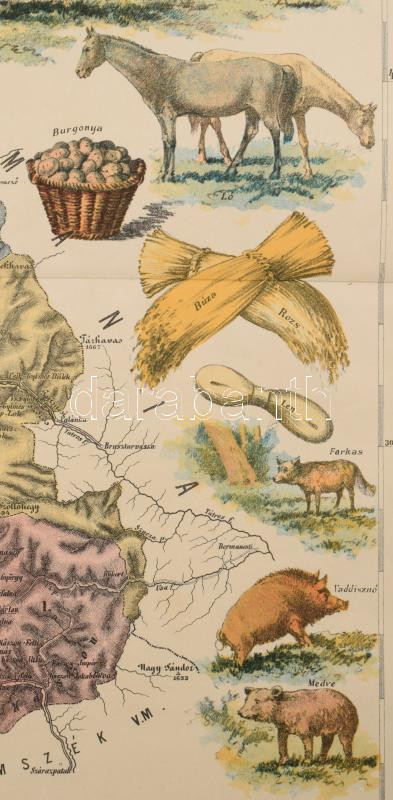 Az atlasz lapjai a hazai térképtörténet talán legszebb térképei. A gyönyörűen színezett darabokon az adott vármegyére jellemző épületek, mezőgazdasági termények, állatok, ipari termékek, közlekedési eszközök, természeti látnivalók láthatóak.