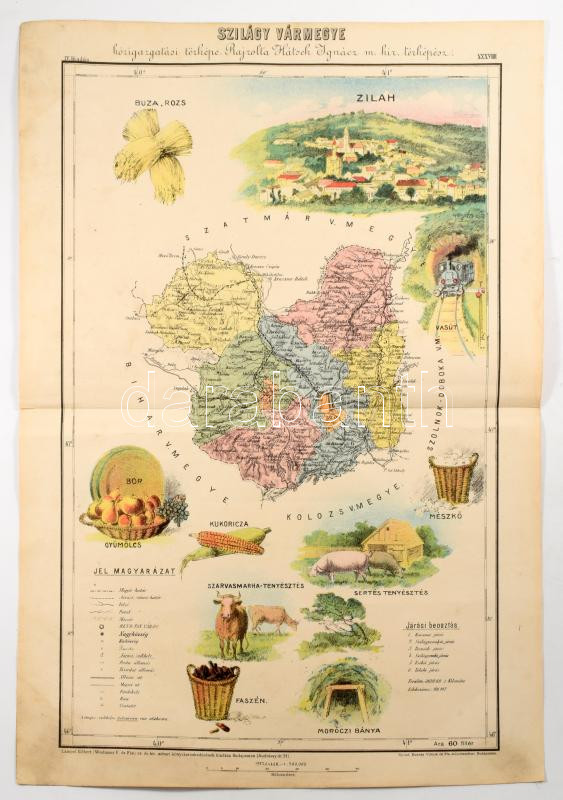 Szilágy vármegye (Tasnád - Szilágysomlyó - Zilah) nagy méretű (37 x 53 cm. ) kőnyomatú térképe . Megjelent, Hátsek Ignácz: Magyarország megyei térképei c. atlasz lapjaként. Rajzolta Hátsek Ignácz. kiadta: Lampel Róbert (Wodianer F. És Fiai) nyomtatta: Kunossy Vilmos és Fia, Budapest.