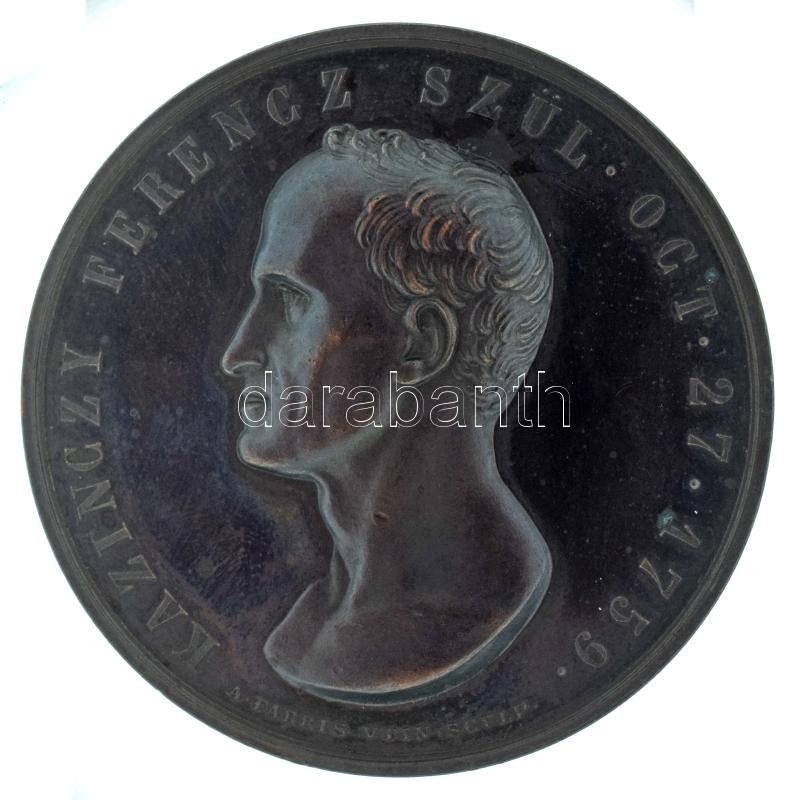Anton Fabris (1792-1865) 1859. "Kazinczy Ferenc emlékérem" bronz, kétoldalas, vert emlékérem. "KAZINCZY FERENCZ SZÜL OCT 27 1759 / A MAGYAR TUDOMÁNYOS AKADÉMIA OCT 27 1859" (50mm) T:AU kis ph.
