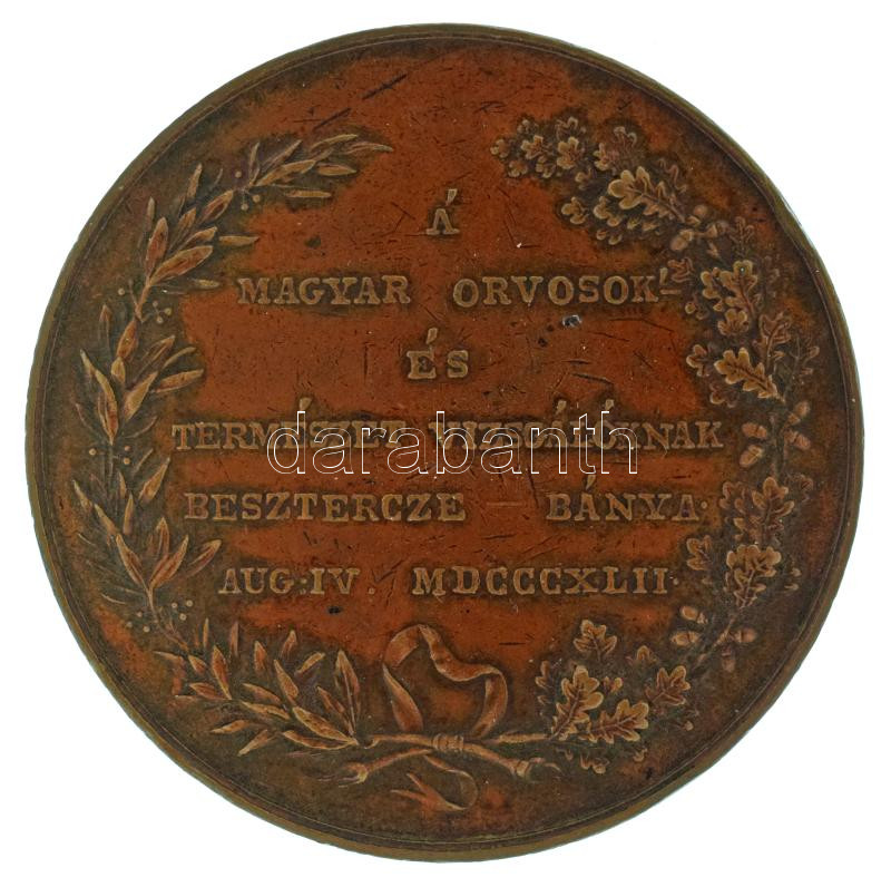 Heinrich Karl 1842. "Egyesülve Haladjunk / A Magyar Orvosok és Természetvizsgálóknak Beszterczebánya Aug. IV. MDCCCXLII" kétoldalas bronz emlékérem (42,1g/45mm) T:XF, kis peremhiba /
