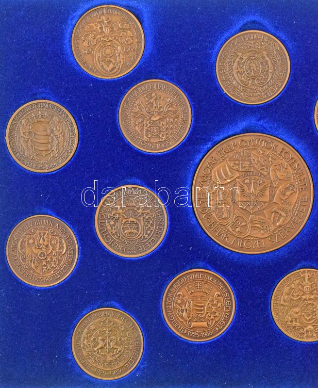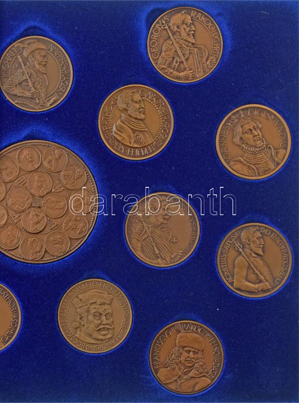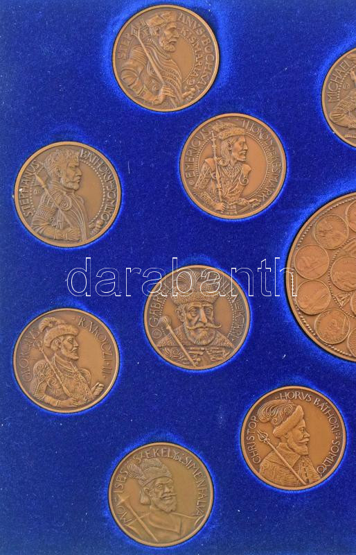 Tóth Sándor (1933-2019) 1982-1990. "MÉE Hajdú-Bihar Megyei Szervezete (Debrecen) - Erdélyi Fejedelmek" sorozat teljes, 15(+1)db-os bronz emlékérem szettje a záróéremmel együtt, éremtartó tálcában! T:UNC,AU / Hungary 1982-1990. "MÉE (Hungarian Numismatic Collectors Society) Hajdú-Bihar County Organization - Debrecen / Princes of Transylvania" complete series, 15(+1)pcs bronze medallion set with the closing medallion, in a medal tray! Sign: Sándor Tóth (1933-2019) C:UNC,AU