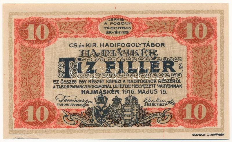 Hajmáskér / hadifogolytábor 1916. május 15. 10f római sorozat és arab sorszámozás, "MS" jelzéssel és "XXXIV 0674" sorszámmal T:AU / Hungary / Hajmáskér / POW camp 15.05.1916. 10 Heller with Roman series and Arabic serial numbers, "MS" and "XXXIV 0674" serial number C:AU