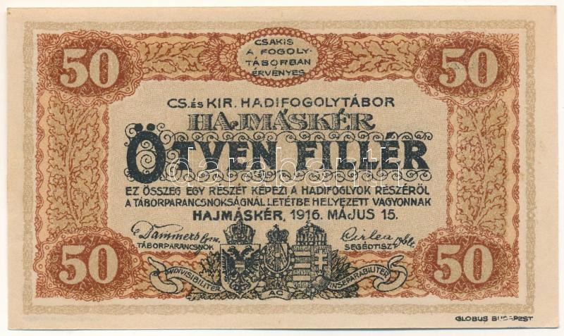 Hajmáskér / hadifogolytábor 1916. május 15. 50f római sorozat és arab sorszámozás "XIX 0714" T:AU / Hungary / Hajmáskér / POW camp 15.05.1916. 50 Heller with Roman series and Arabic serial numbers "XIX 0714" C:AU