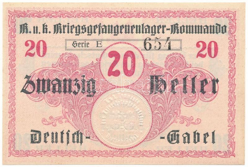 Austro-Hungarian Monarchy / Deutsch Gabel (Jablonné v Podjestsdí) POW camp ~1914-1918. 20 Heller "E 654" with embossed stamp C:UNC,AU