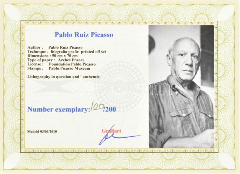 Pablo Picasso (1881-1973): Akt. Ofszet litográfia, papír. Sorszámozott 100/200.Jelzett a nyomaton. Tanúsítvánnyal. 45x35 cm / Ofset lithography with certificate