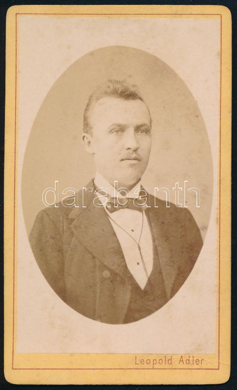 Leírás: cca 1880 Férfiportré, keményhátú fotó Leopold Adler brassói műterméből, 10,5×6,5 cm