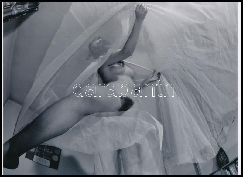 Leírás: cca 1974 ,,Fátyoltánc a legjobb nézőpontból", szolidan erotikus felvétel, 1 db modern nagyítás, 15x21 cm