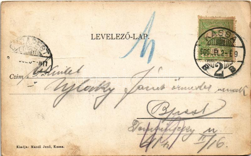 Leírás: 1906 Kassa, Kosice; Katonai alreáliskola. Mandl Jenő kiadása / K.u.K. military school (fl)
