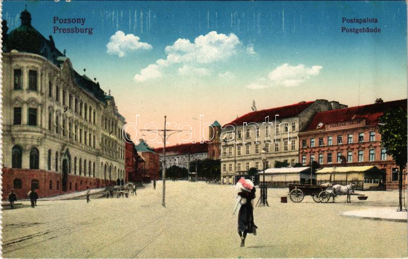 Pozsony, Pressburg, Bratislava; Posta palota, Szarvas szálló / post pa... https://www.darabanth.com/hu/450-Gyorsarveres/450.0/Kepeslapok/Felvidek~1500010/Pozsony-Pressburg-Bratislava-Posta-palota-Szarvas-szallo-post-palace-hotel~II2990095