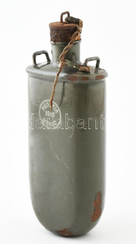 1916 Austria Werke fém kulacs, zománc, kopott, m: 21 cm https://www.darabanth.com/hu/450-Gyorsarveres/450.0/Mutargy-papirregiseg-egyeb/Bolhapiac~500015/1916-Austria-Werke-fem-kulacs-zomanc-kopott-m-21-cm~II2989202
