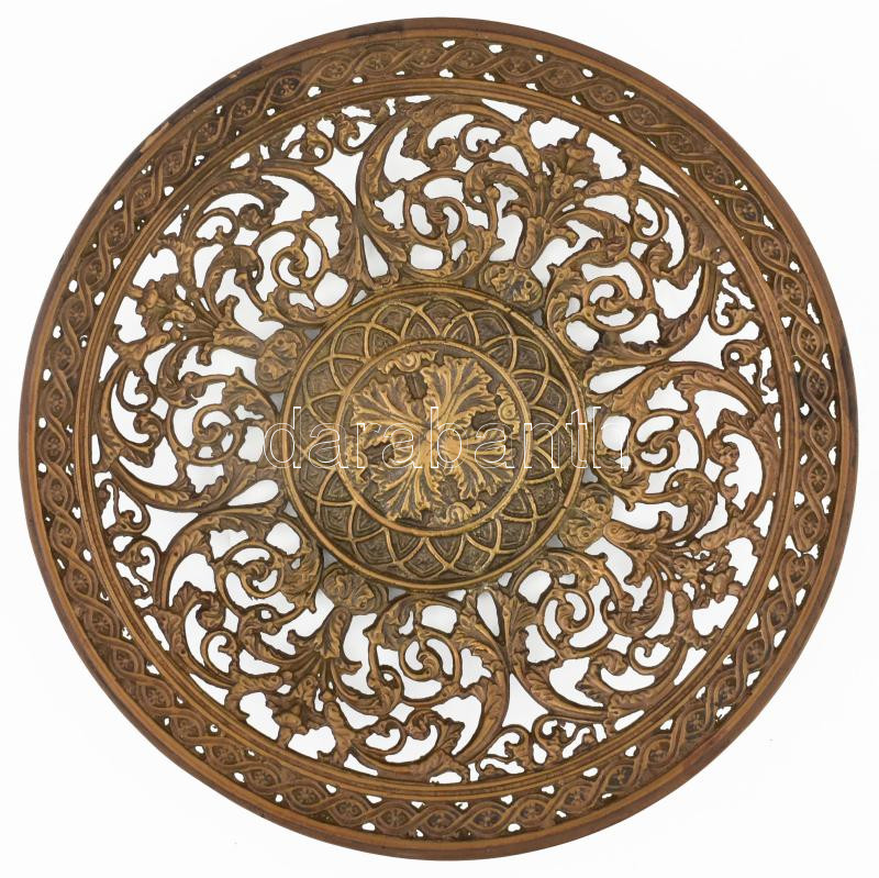 Leírás: Antik öntött bronz kínáló, áttört mintával, jelzés nélkül, kopással, d: 21,5 cm