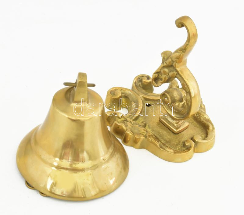 Leírás: Felakasztható réz csengő 9 cm , Tartója 12 cm