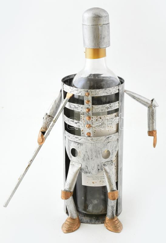 Leírás: Lovag figurát idéző fémlemez italtartó, m: 20 cm + kupak
