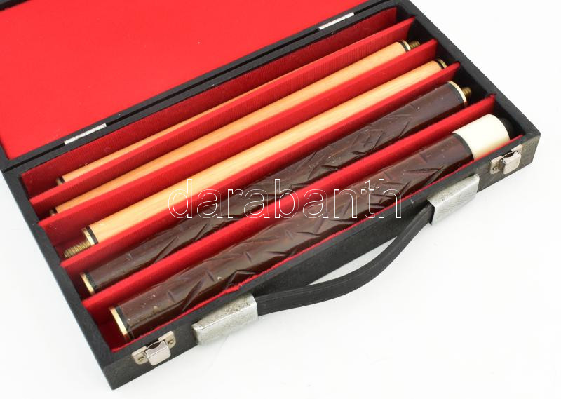Leírás: Régi összecsavarozható dákó, dobozában, kopással