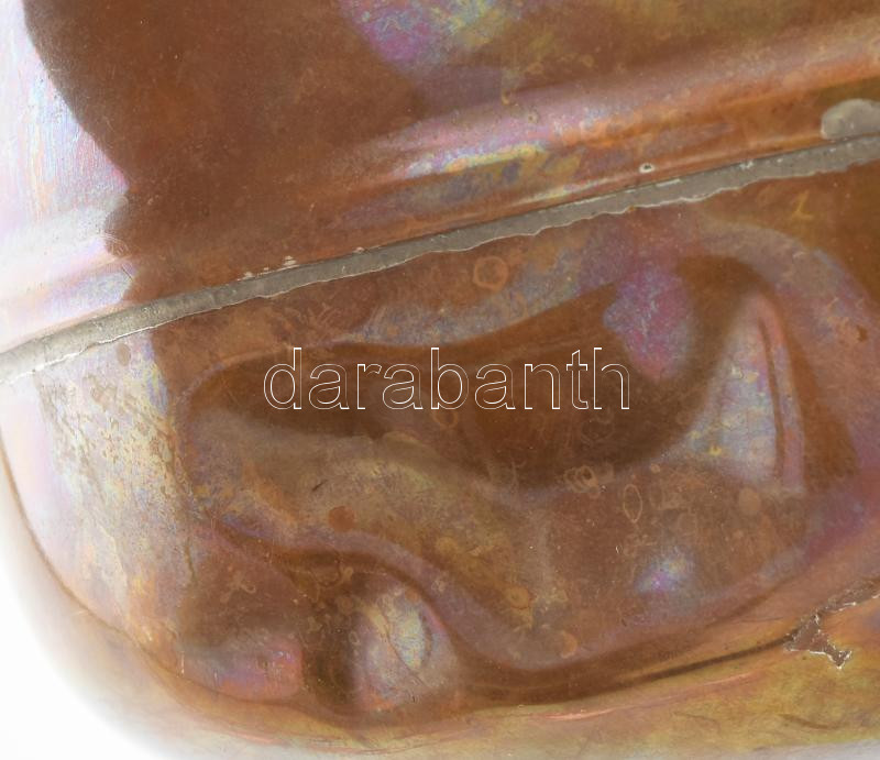 Leírás: Réz ágymelegítő, jelzett, horpadt, h: 28 cm