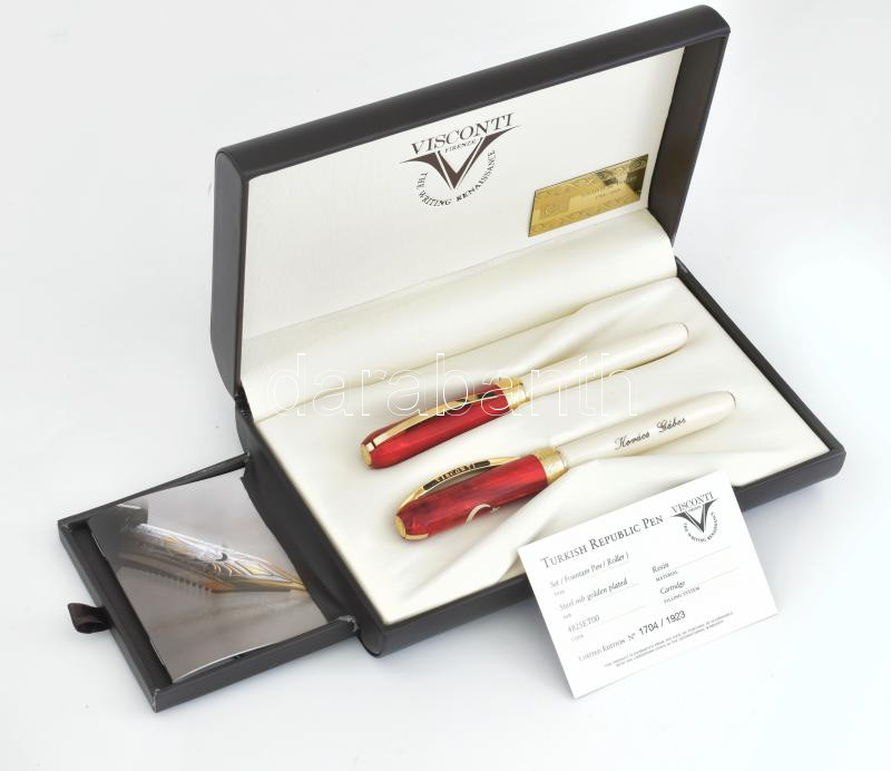 Visconti Turkish Republic Pen töltőtoll és golyóstoll pár, díszdobozba... https://www.darabanth.com/hu/450-Gyorsarveres/450.0/Mutargy-papirregiseg-egyeb/Bolhapiac~500015/Visconti-Turkish-Republic-Pen-toltotoll-es-golyostoll-par-diszdobozban-certifikattal-nevr~II2986292