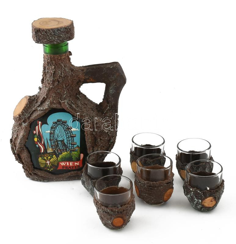 Leírás: Wien Prater likőr fa mintás üveggel. 6 db likőrös pohárral