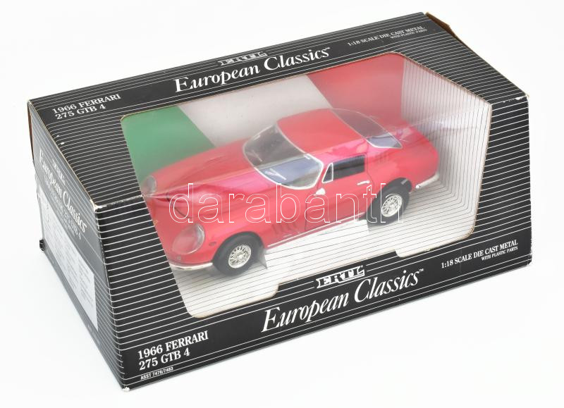 Leírás: Ertl 1966 Ferrari 275 GTB 4 1:18 makett, bontatlan díszdobozban, 33x15x15 cm