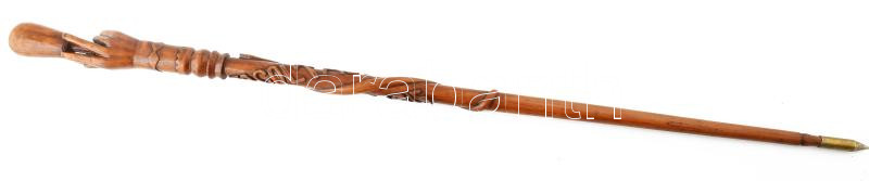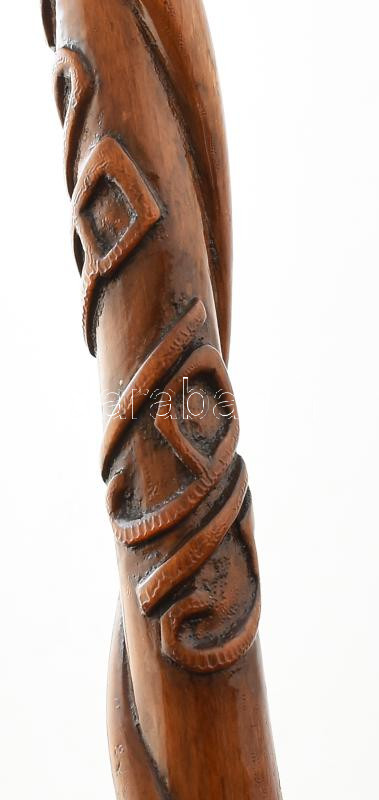 Leírás: Fogolytábor 1915 faragott fa sétabot, aprólékos faragással, jó állapotban, h: 96 cm