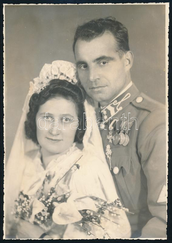Törzsőrmester esküvői fotója, kitüntetésekkel, 23,5x16,5 cm https://www.darabanth.com/hu/450-Gyorsarveres/450.0/Mutargy-papirregiseg-egyeb/Militaria~1000001/Torzsormester-eskuvoi-fotoja-kituntetesekkel-23-5x16-5-cm~II2993225