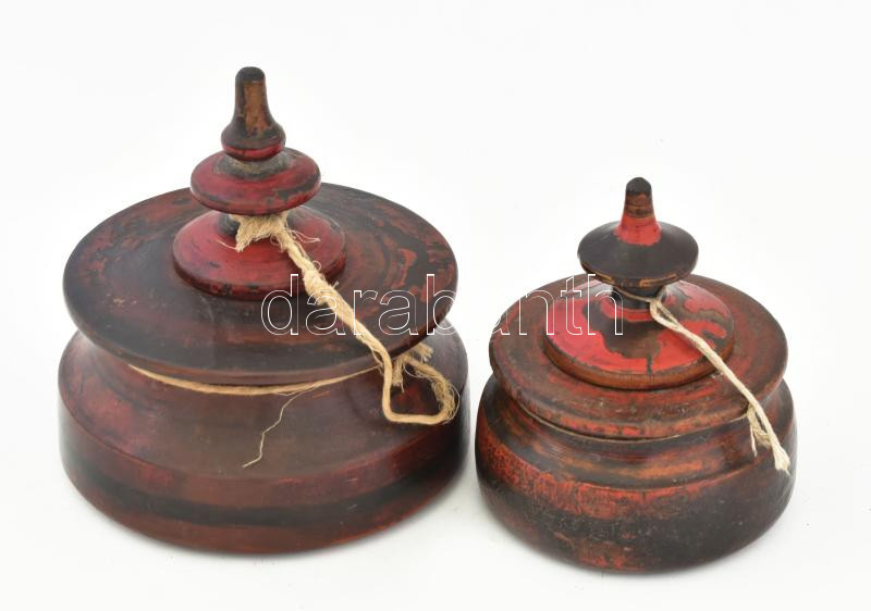 2 db fűszer / dohány tartó. Kézzel festett, faragott fa. d: 11, 15 cm https://www.darabanth.com/hu/450-Gyorsarveres/450.0/Mutargy-papirregiseg-egyeb/Mutargyak-antikvitas~500009/2-db-fuszer-dohany-tarto-Kezzel-festett-faragott-fa-d-11-15-cm~II2989117