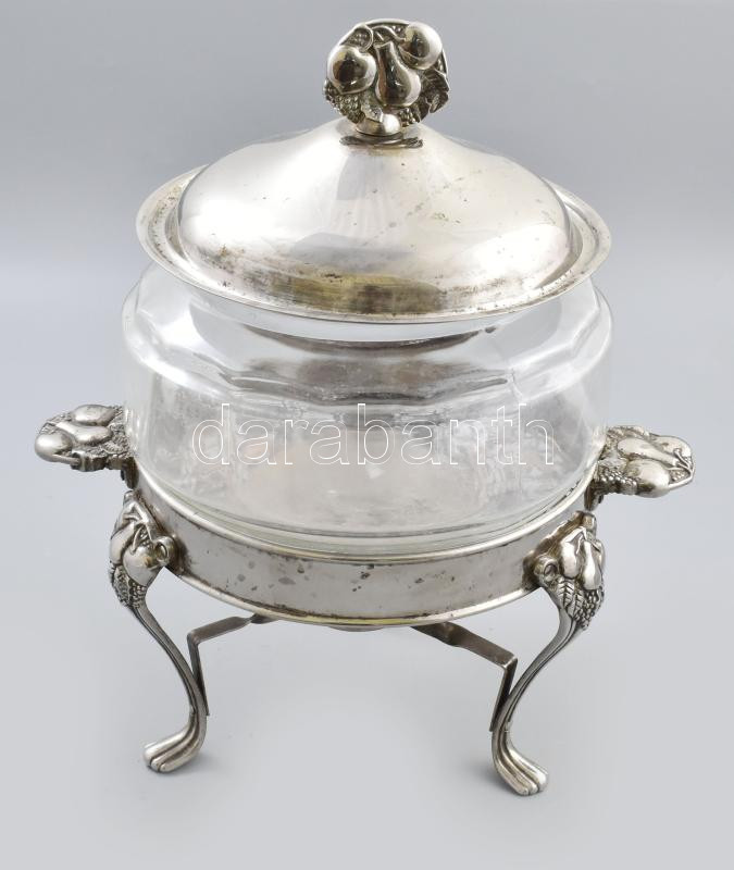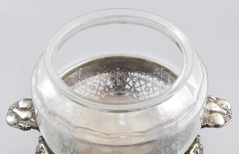 Leírás: Nagy méretű üvegbetétes ezüstözött leves szervírozó, kopással, m: 38 cm
