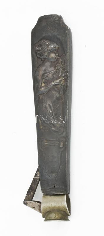 Leírás: Szecessziós, antik fém szivarvágó, 13,5 cm