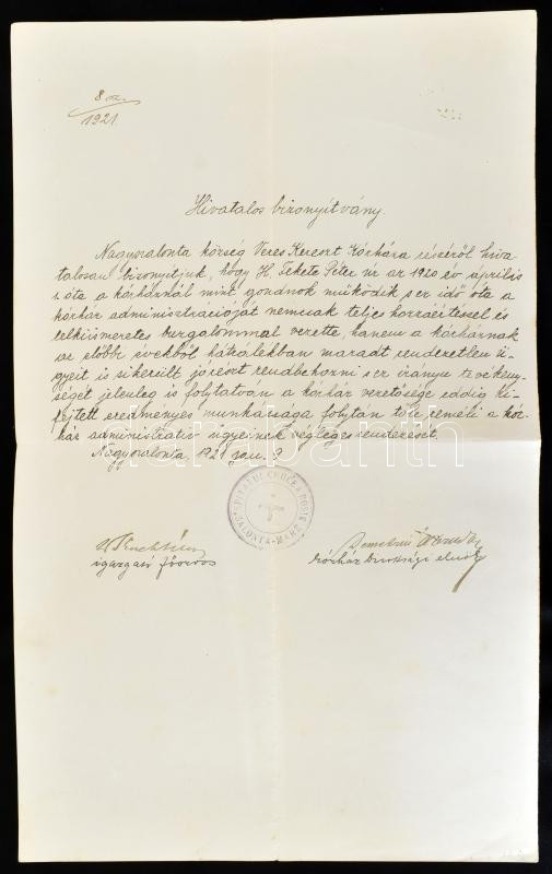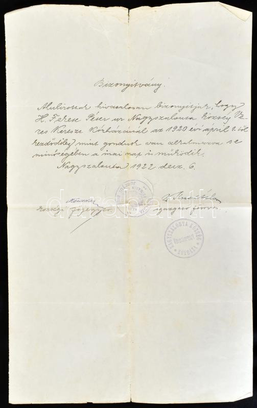 1921 Nagyszalonta, vöröskereszt kórházi bizonyítványok, 2 db https://www.darabanth.com/hu/450-Gyorsarveres/450.0/Mutargy-papirregiseg-egyeb/Okmanyok~500022/1921-Nagyszalonta-voroskereszt-korhazi-bizonyitvanyok-2-db~II2993674