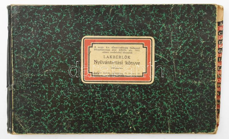 Leírás: 1943 Budapest Vörösvári út 59. Lakásbérlők nyilvántartási könyve kitöltve, hozzá szabályzat