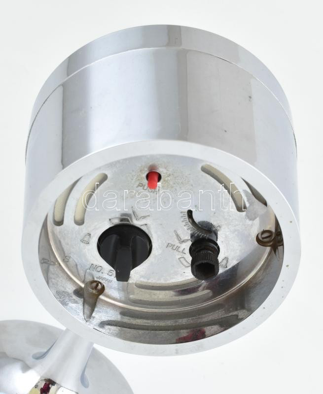 Leírás: Rhythm japán retro asztali óra, felhúzós, fém és műanyag testtel, minimális kopással, működik, m: 18 cm