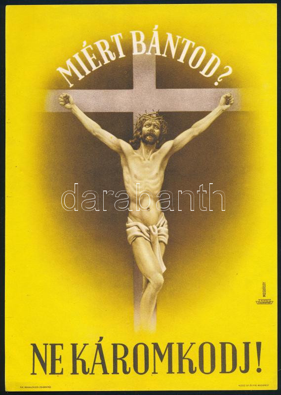 cca 1930 Mosdóssy Imre (1904-1995): Miért bántod? Ne káromkodj! plakát... https://www.darabanth.com/hu/450-Gyorsarveres/450.0/Mutargy-papirregiseg-egyeb/Plakat~2000026/cca-1930-Mosdossy-Imre-1904-1995-Miert-bantod-Ne-karomkodj-plakat-Klosz-Coloroffset-haj~II2992691