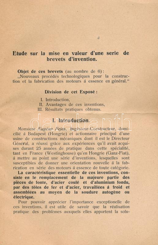 Leírás: 1925 A Fejes Lemezmotor gyár képes automobil és motor katalógusa teljesítmény adatokkal, franciául 16p Hátsó borítón szakadás