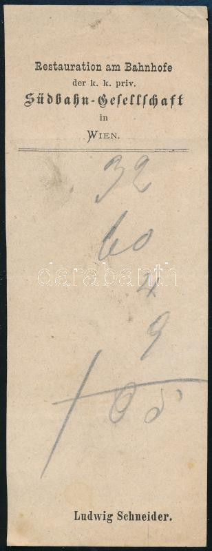 Leírás: cca 1900 WIen, Restauration am Bahnhofe der k. k. priv. Südbahn-Gesellschaft in Wien számolócédula