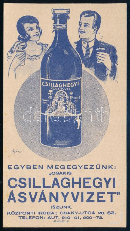 cca 1930 Csillaghegyi ásványvíz számolócédula, szép állapotban https://www.darabanth.com/hu/450-Gyorsarveres/450.0/Mutargy-papirregiseg-egyeb/Reklam~500026/cca-1930-Csillaghegyi-asvanyviz-szamolocedula-szep-allapotban~II2992832