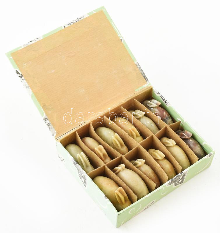 Leírás: 12 db kínai jáde nyúl figura, eredeti dobozában egyenként 5 cm