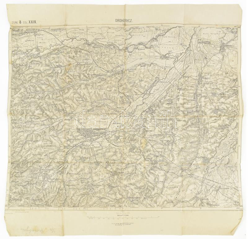 cca 1896 Drohobycz (Drohobych, Ukrajna) és környéke, katonai térkép, 1 : 75.000, K. u. k. militär-geographisches Institut, kissé sérült, két szélén vágott, 49x47,5 cm