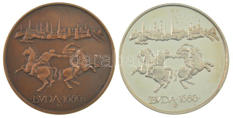 Lapis András (1942-) 1986. "MÉE XVI. Vándorgyűlése - Buda visszafoglalásának 300. évfordulóján / Buda 1686" bronz és jelzetlen Ag emlékérem pár (35,83g/0.835/42,5mm) T:UNC, AU (PP) ujjlenyomatos