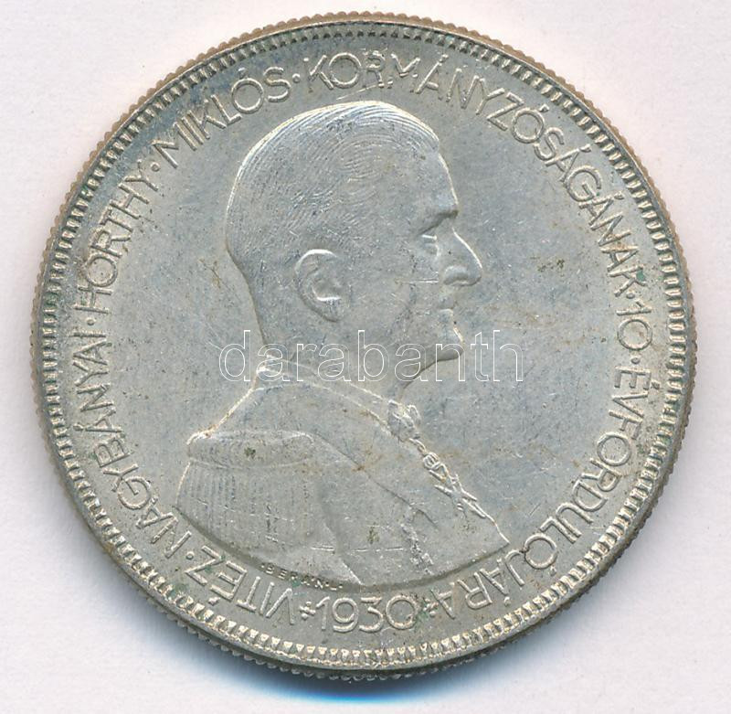Leírás: 1930. 5P Ag "Horthy jobbra" hajas T:XF patina Adamo P8