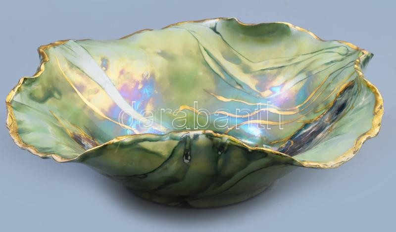 Leírás: Segesdi Bori: Fodros zöld kínálótál. Jelzéssel, kopással, d: 25 cm