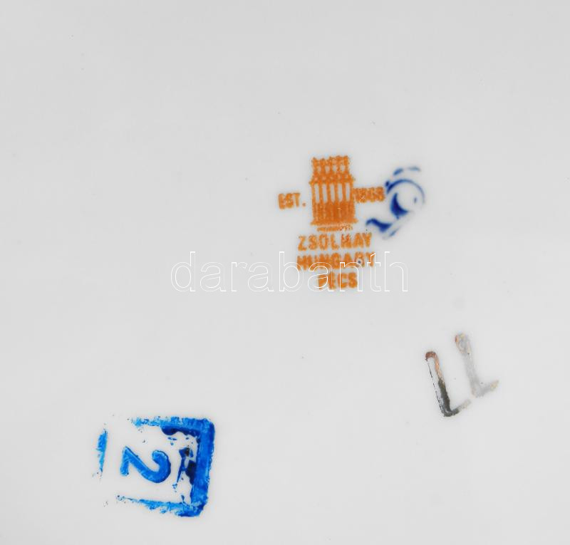 Leírás: Zsolnay Pompadour mintás 6 személyes szendvicses készlet, jelzett, minimális kopásokkal.