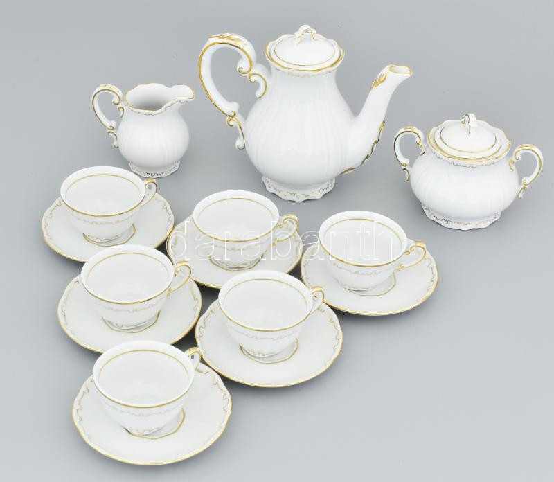 Leírás: Zsolnay tollas mintás kávés készlet. 6 személyes, jelzéssel, hibátlan, eredeti díszdobozban